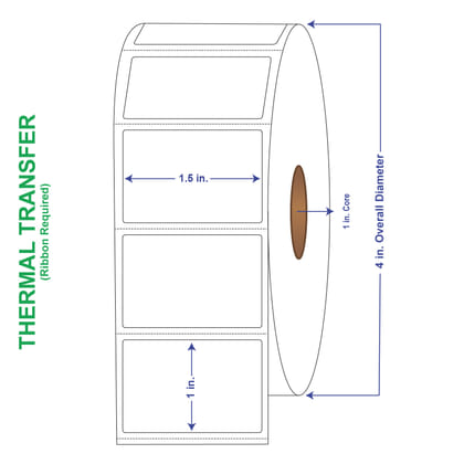 1-1/2" x 1" General Use Labels, w/ Perf Thermal Transfer Labels, Perforated, 1310 per roll (4 Rolls per Carton)