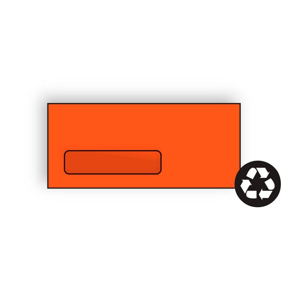 #10 Poly Window Business Envelopes, 4-1/8" x 9-1/2", 24#, Brightly Colored Orange, Acid Free, Diagonal Seam (Box of 500)