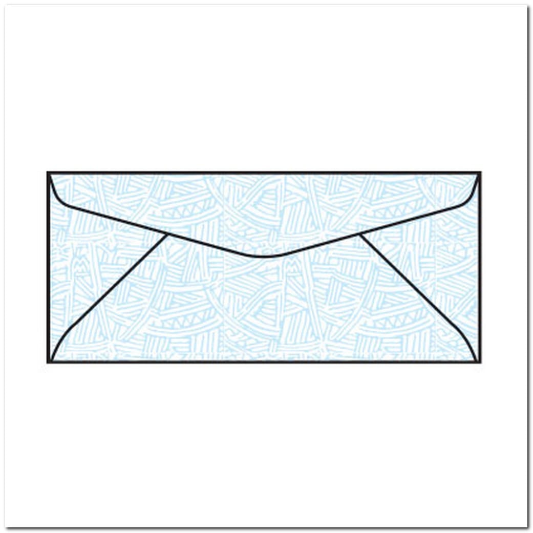 4-1/8" x 9-1/2" White Sulphite (SFI Certified) 92% Brightness, Vellum finish, Black/Blue Wesco Inside Tint, Diagonal Seams, No Window, Remoistening Seal, Flap Down, Packaged in Unlabeled Soft Box