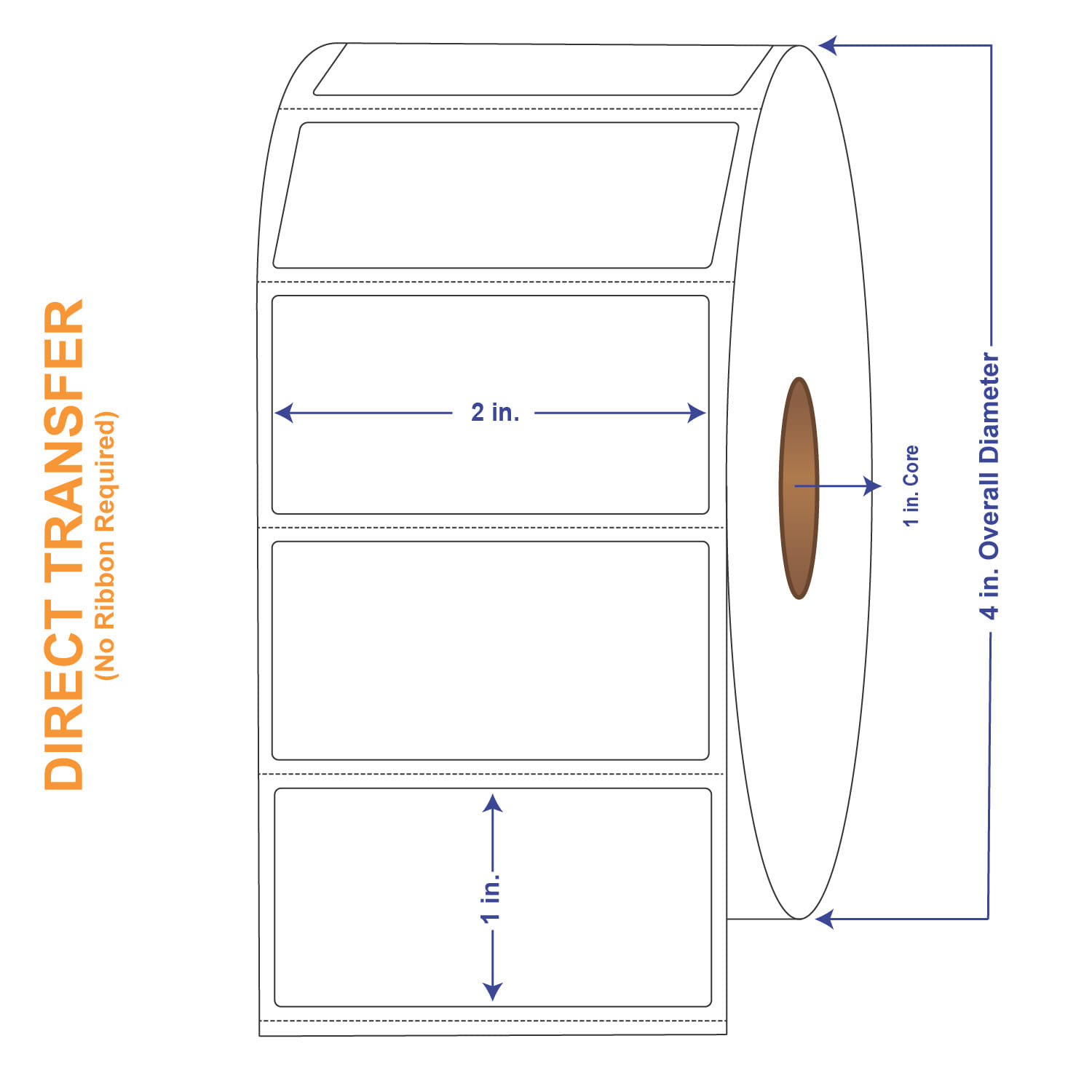 2" x 1" White Direct Print Thermal Labels, 1400 per roll (4 Rolls per Carton)