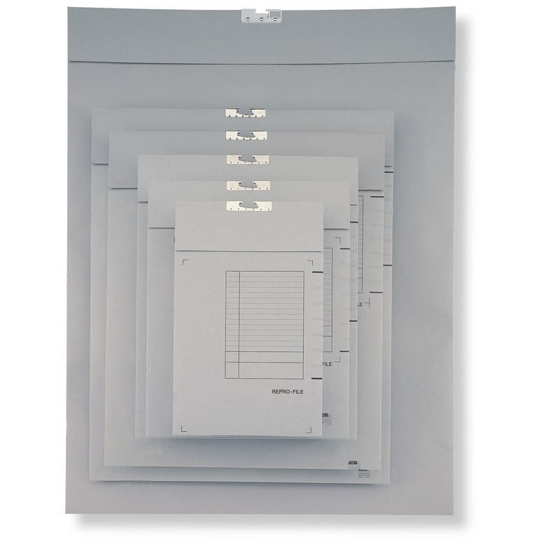 22" x 26" Capacity Jalema Grafi-System Grey Repro-File (Box of 50) Jalema Grafi-System Grey Repro-Files include a double pocket with a dust flap that has 22" x 26" capacity. It is constructed of 335 gram Tenax cardboard. The sturdy material allows for storage of several flexo plates in a single file. They fit on manufacturer part number 6455002 2-level racks and are sold 50/box.