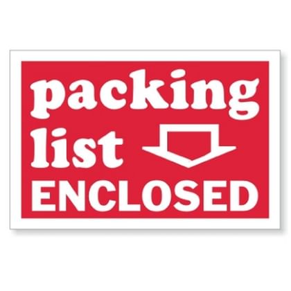 | Label Type: | Special Handling Labels | Legend: | Packing List Enclosed | |