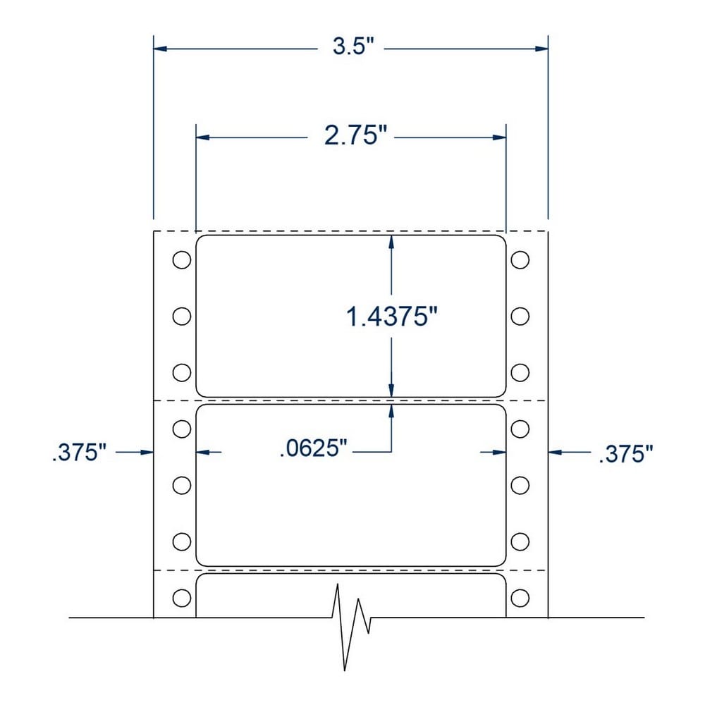 One Across White pinfeed Diskette Labels are 7.1 mil thick with a weight of 122 pounds per ream of 25" x 38" sheets. The face paper of these labels is a 50# data surface sized lignin-free machine finished paper. These multipurpose labels are designed for information labeling, impact, and nonimpact printing. The opacity of the face stock is 90% with a 93% brightness rating. The adhesive used on these labels is a modified acrylic adhesive. The minimum labeling temperature for this type of adhesive is 32° Fahrenheit, with a service temperature range from -4°F to 176°F. A 3.2 mil white kraft machine finished liner completes this label. Developed for continuous EDP pinfeed applications, this label liner is ideal for folding and friction feed applications. The shelf life of these labels when stored at 70°F and 50% relative humidity (RH) is one year. Color: White, Size: 2.75" x 1.4375"". - 2,500 Labels per Carton