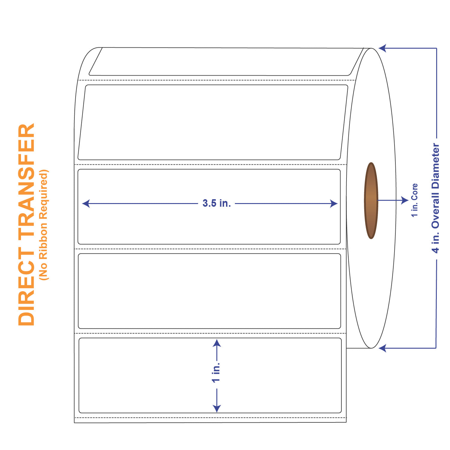 3-1/2" x 1" White Direct Print Thermal Labels, 1310 per roll (4 Rolls per Carton)