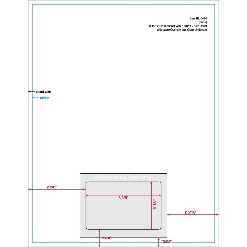 3-3/8" x 2-1/8" (3.375" x 2.125"), 19 lbs., 24# MOCR Stock with Laser Laminates, 8.5" x 11" Laser Cutsheet, 1 Card / Sheet, 1,000 Sheets / Carton