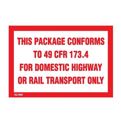 Legend:THIS PACKAGE CONFORMS TO 49 CFR - 173.13 FOR DOMESTIC OR RAIL TRANSPORT ONLY