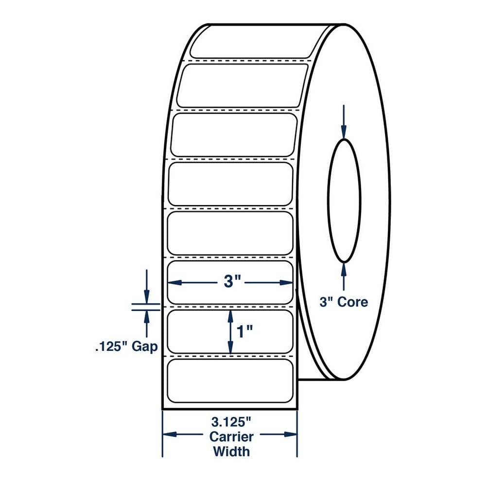 3" x 1" White General Purpose Thermal Transfer Labels, Perfed, 5500 per roll (6 Rolls per Carton)