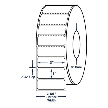 White General Purpose Thermal Transfer Labels, Perfed The adhesive used on these labels is a modified acrylic dispersion permanent adhesive. This is a very good adhesive for a wide variety of substrates. The minimum labeling temperature for this type of adhesive is 32° Fahrenheit, with a service temperature range from -4°F to 176°F. A 40# (2.5 mil) white kraft liner completes this label. The label liner is ideal for roll stock applications and photocell dispensing. The shelf life of these labels when stored at 70°F and 50% relative humidity (RH) is one year. Size: 3" x 1", Color: White. 5500 per roll (6 Rolls per Carton)