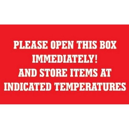 | Label Type: | Special Handling Labels | Legend: | Please Open This Box Immediately! And Store Items At Indicated Temperatures | |
