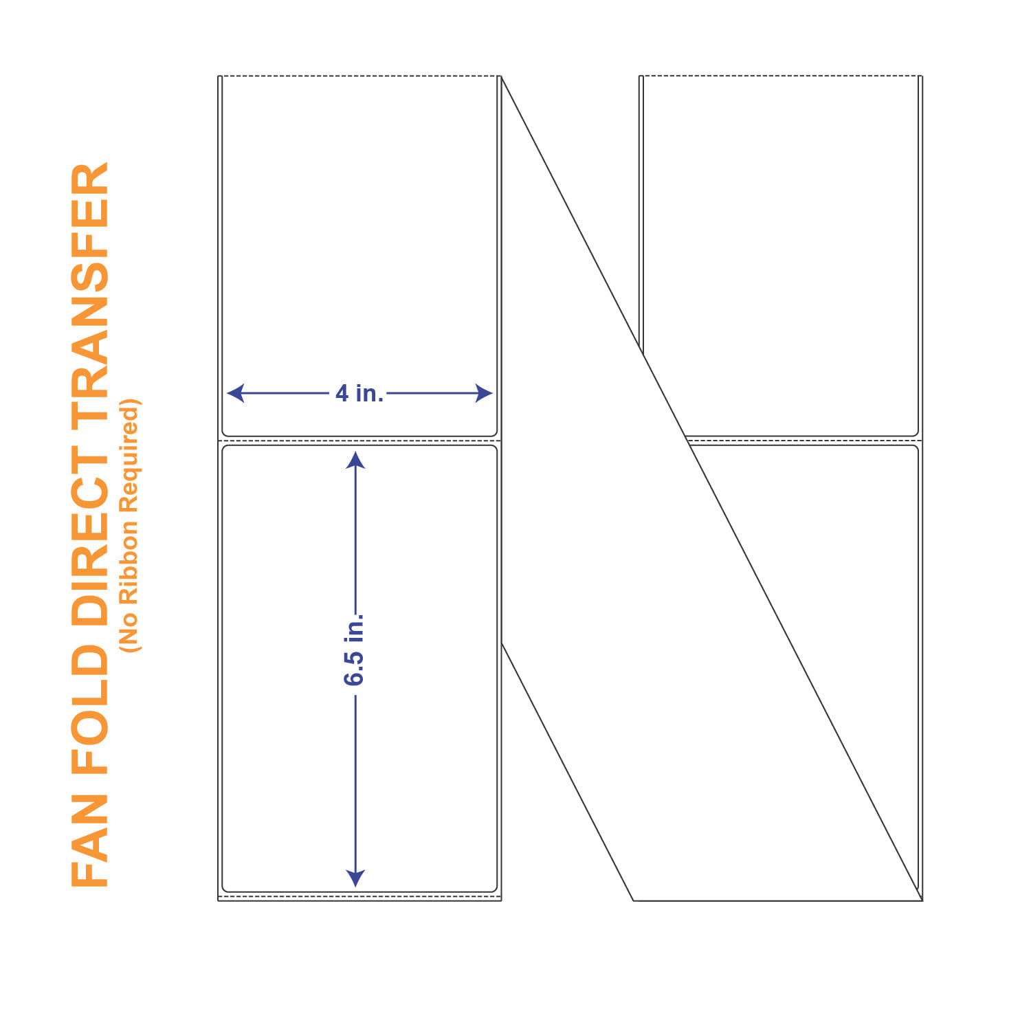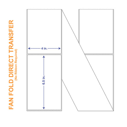 White Direct Print Fan Fold Thermal Labels measure 4" X 6-1/2" and have 2000 labels per stack with 2 stacks in a carton. It is made from a Fasson Direct-Therm 300LD facestock. Fasson Direct-Therm 300LD is a smooth, non-topcoated bright white paper with a high sensitivity thermal coating. It is intended for use in dry applications. Exposure to contaminants such as water, oil, alcohol and other liquids can affect the thermal layer. This product is suitable for use in a wide variety of direct thermal label printers, especially those typically used in industrial applications. These labels use a general purpose permanent emulsion acrylic adhesive designed for excellent adhesion to corrugated cardboard and superior adhesion to plastics. This adhesive meets the requirements of FDA CFR 175.105 for indirect food contact.