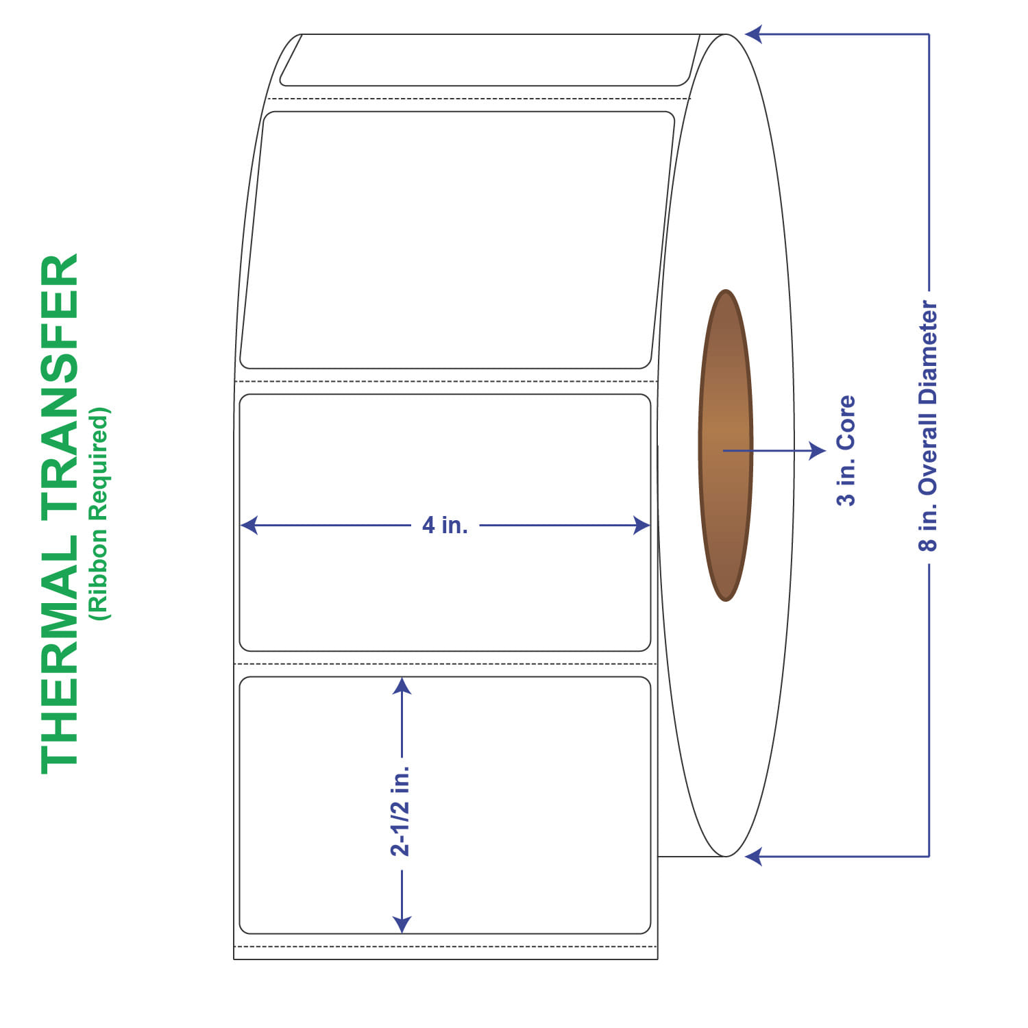 4" x 2-1/2" General Use Labels, w/ Perf Thermal Transfer Labels, Perforated, 2500 per roll (4 Rolls per Carton)
