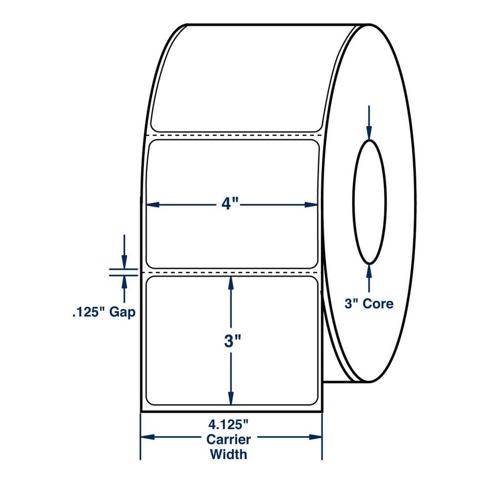 4" x 3" White Direct Print Thermal Labels, 2000 per roll (4 Rolls per Carton)