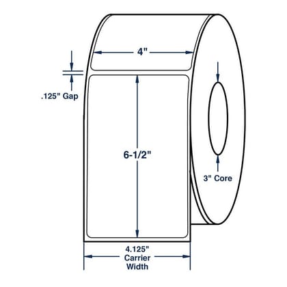 4" x 6.5" White General Purpose Thermal Transfer Labels, Non-Perforated, 900 per roll (4 Rolls per Carton)