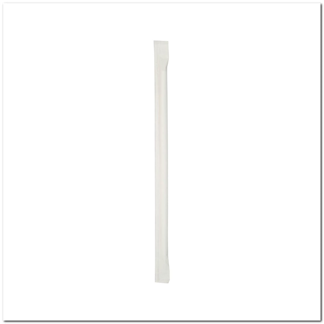 These polypropylene milk straws are 5-3/4" and come in white. They are individually wrapped with a tearable paper material (500/Box, 24 Boxes/Case).