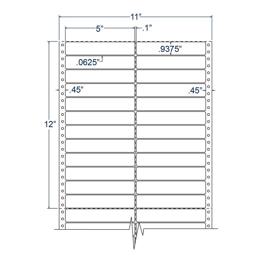 5" x 0.9375" Two Across White General Purpose pinfeed Labels (10000 Labels Per Carton)