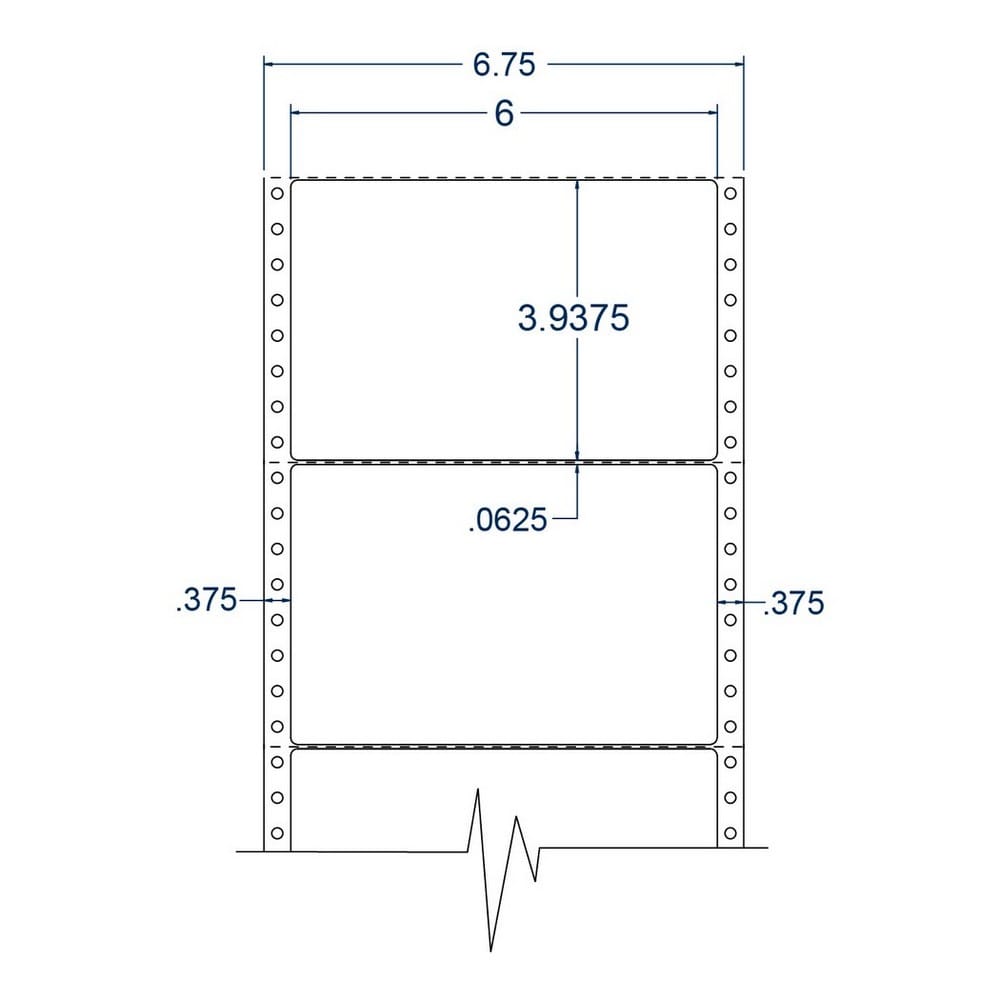 6" x 3.9375" One Across White pinfeed Shipping Labels (2500 Labels Per Carton)