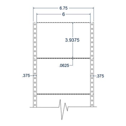 One Across White pinfeed Shipping Labels are 7.1 mil thick with a weight of 122 pounds per ream of 25" x 38" sheets. The face paper of these labels is a 50# data surface sized lignin-free machine finished paper. These multipurpose labels are designed for information labeling, impact, and nonimpact printing. The opacity of the face stock is 90% with a 93% brightness rating. The adhesive used on these labels is a modified acrylic adhesive. The minimum labeling temperature for this type of adhesive is 32° Fahrenheit, with a service temperature range from -4°F to 176°F. A 3.2 mil white kraft machine finished liner completes this label. Developed for continuous EDP pinfeed applications, this label liner is ideal for folding and friction feed applications. The shelf life of these labels when stored at 70°F and 50% relative humidity (RH) is one year. Color: White, Size: 6" x 3.9375". - 2,500 Labels per Carton