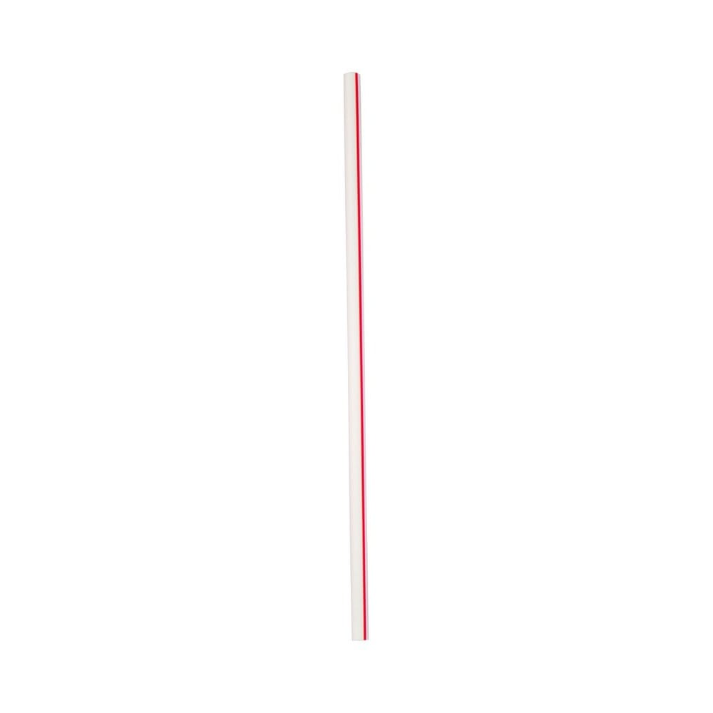 These polypropylene jumbo soda straws are 7-3/4" and come in red/white striped. They are unwrapped and loose (250/Box, 50 Boxes/Case).