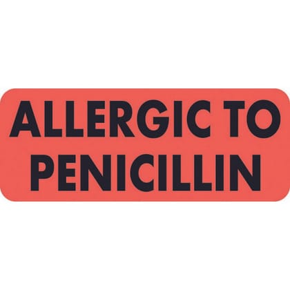 | Legend: | ALLERGIC TO: Penicillin | Material: | Paper stock | |