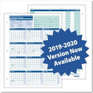 Recording absences and tardiness with a simple coding system offers an instant view of the whole year. The academic year calendar makes it easy to track reasons for absences, tardies, disciplinary action, and any related discussion and follow-up steps to take regarding attendance throughout the academic year! Academic year attendance calendars are now available for the period August 2019 – July 2020. Our highly visible white academic year calendars come 50 sheets per pack.