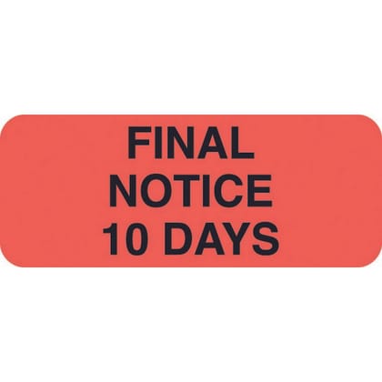 | Legend: | FINAL NOTICE 10 DAYS | Material: | Paper stock | |