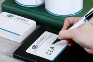 Blank labels are versatile in that they can stick to most surfaces and be customized any way you wish, whether by writing on them directly or running them through your office printer. Business card stickers are 3.5” x 2”, making them the same size as a traditional business card. And since they arrive blank, they are extremely versatile for being used around the office.