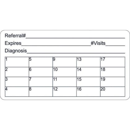| Legend: | Referral#:_Expires_#Visits_Diagnosis_ | Material: | Paper stock | |