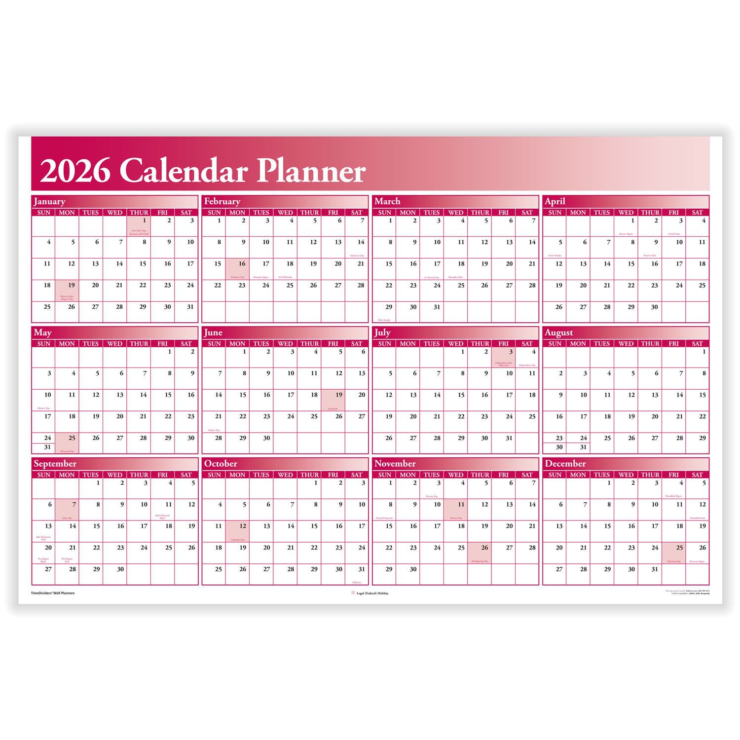 • 2026 Full Calendar Planner