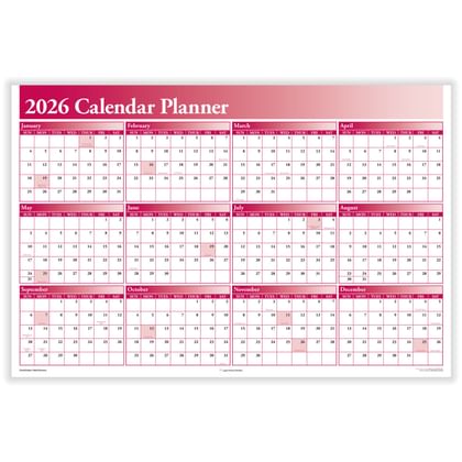 ComplyRight 2026 Burgundy Full Calendar Planner, 2 Sided, 36" x 24" (Pack of 1)