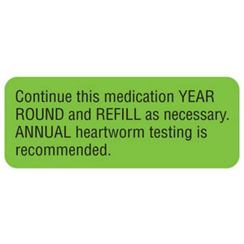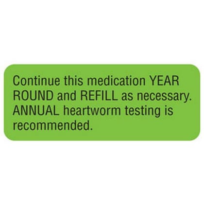 | Legend: | Continue this medication YEAR ROUND and REFILL as necessary. ANNUAL heartworm testing is recommended. | Material: | Poly Stock | |