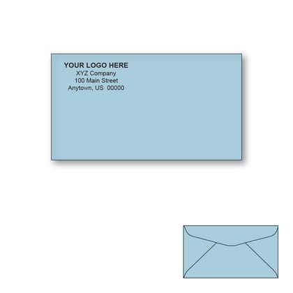 White envelopes don't do much to garner attention. If your mail needs to catch someone's eye, give our custom printed #6-3/4 blue envelopes a try. Made in the USA from 24-pound blue paper stock, these envelopes feature a standard flap with a remoistening seal.