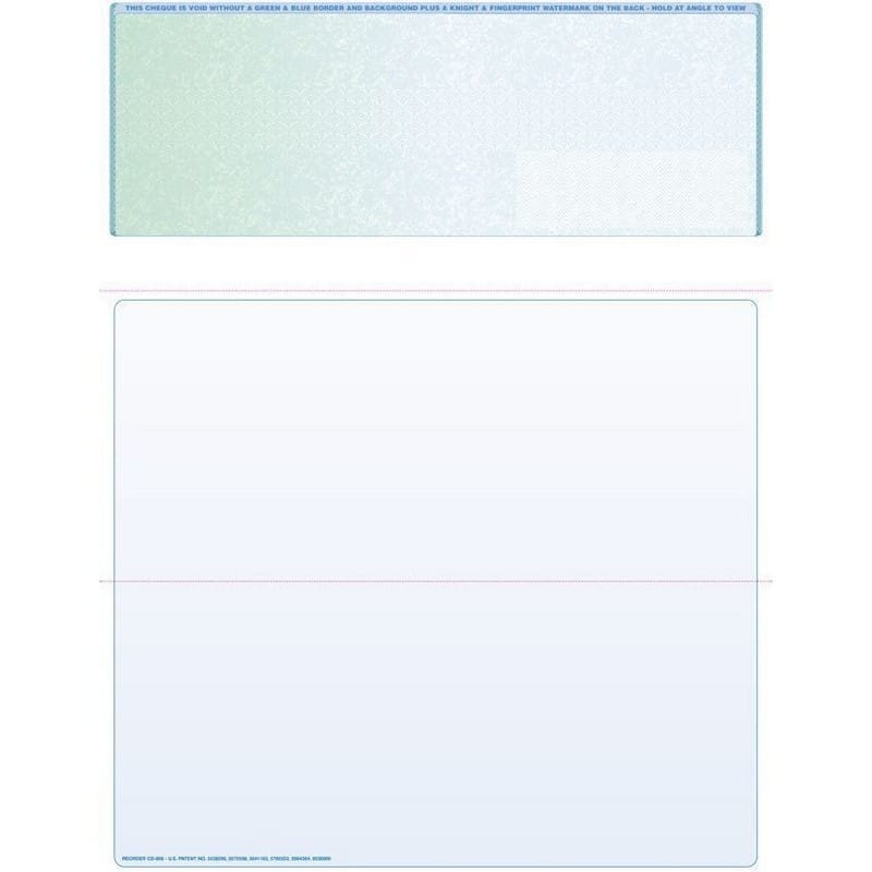 Go for a business check that offers better than average visual appeal with this Green to Blue Rainbow Canadian Laser Check. Located at the Top Position for printing, this attractive check features a subtle color transition from light green to light blue, giving the check face a pleasant marine quality. Tri-Fold panels are useful for providing additional information and/or security cover. Comes in a carton of 500 laser checks.
