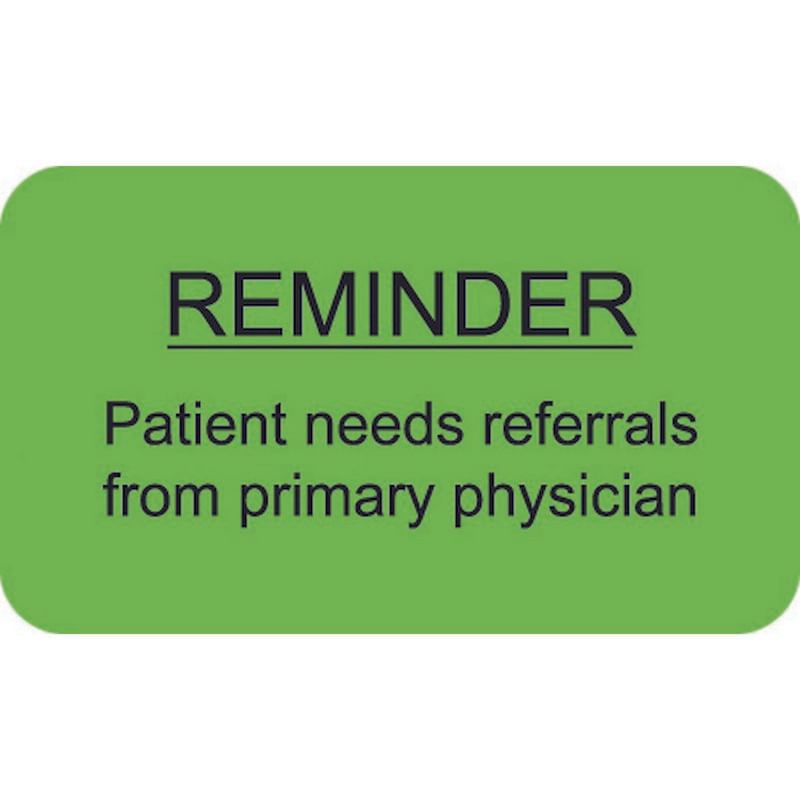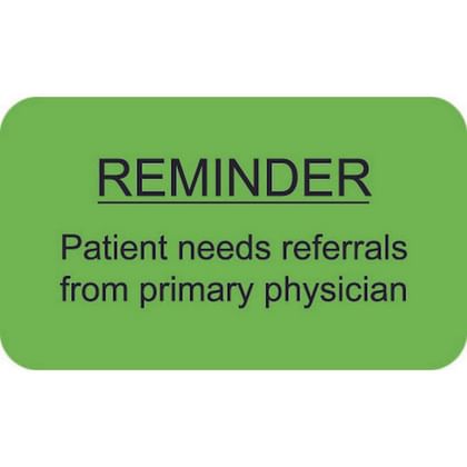 | Legend: | REMINDER Patient needs referral from primary physician | Material: | Paper stock | |