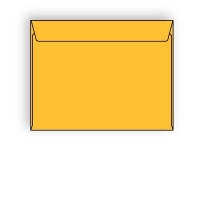 9" x 12", Open Side Booklet Envelope, No Window, Starburst, Brightly Colored Sulphite Paper, Paper Color: Tangerine, Vellum Finish, Side Seam, Flap Down, Remoistening Seal, 500 Qty / Box, 500 Qty / Ctn, 22 lbs. per Box