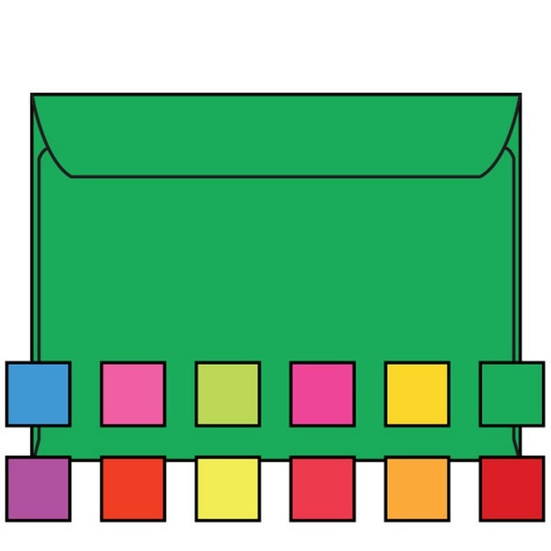 9" x 12", Open Side Booklet Envelope, No Window, Starburst, Recycled Brightly Colored Sulphite Paper, Paper Color: Green, Vellum Finish, Side Seam, Flap Down, Remoistening Seal, 500 Qty / Box, 500 Qty / Ctn, 22 lbs. per Box