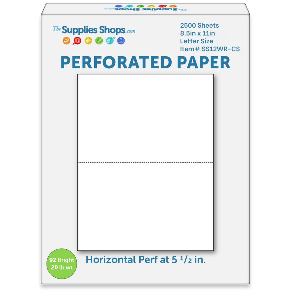 Save time and money using our pre-perforated paper with a full horizontal perforation at 5 1/2". Perfect for when you're on a budget! The sheets are each 8 1/2" x 11" letter size with 20# white paper stock, 92 brightness, and is perforated into two parts to create two 8.5" x 5.5" sheets. The paper has a long grain direction. The paper can be purchased as a carton of 2,500 sheets packed in 5 reams of 500 or by the ream which has 500 sheets each. This pre-perfed paper is great for use in media and entertainment for tickets and in advertising for coupons. Our perf paper is micro perfed to ensure smooth printing in laser and inkjet printers. In addition, the paper has special Colorlok treatment that enhances color reproduction and print quality!