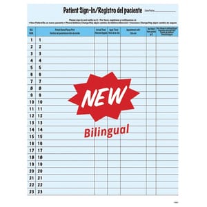 Blue English/Spanish Confidential Patient Sign-In Forms, 8-1/2" x 11", 23 Peel Off Label Sign In Lines (125 Forms/Pack)