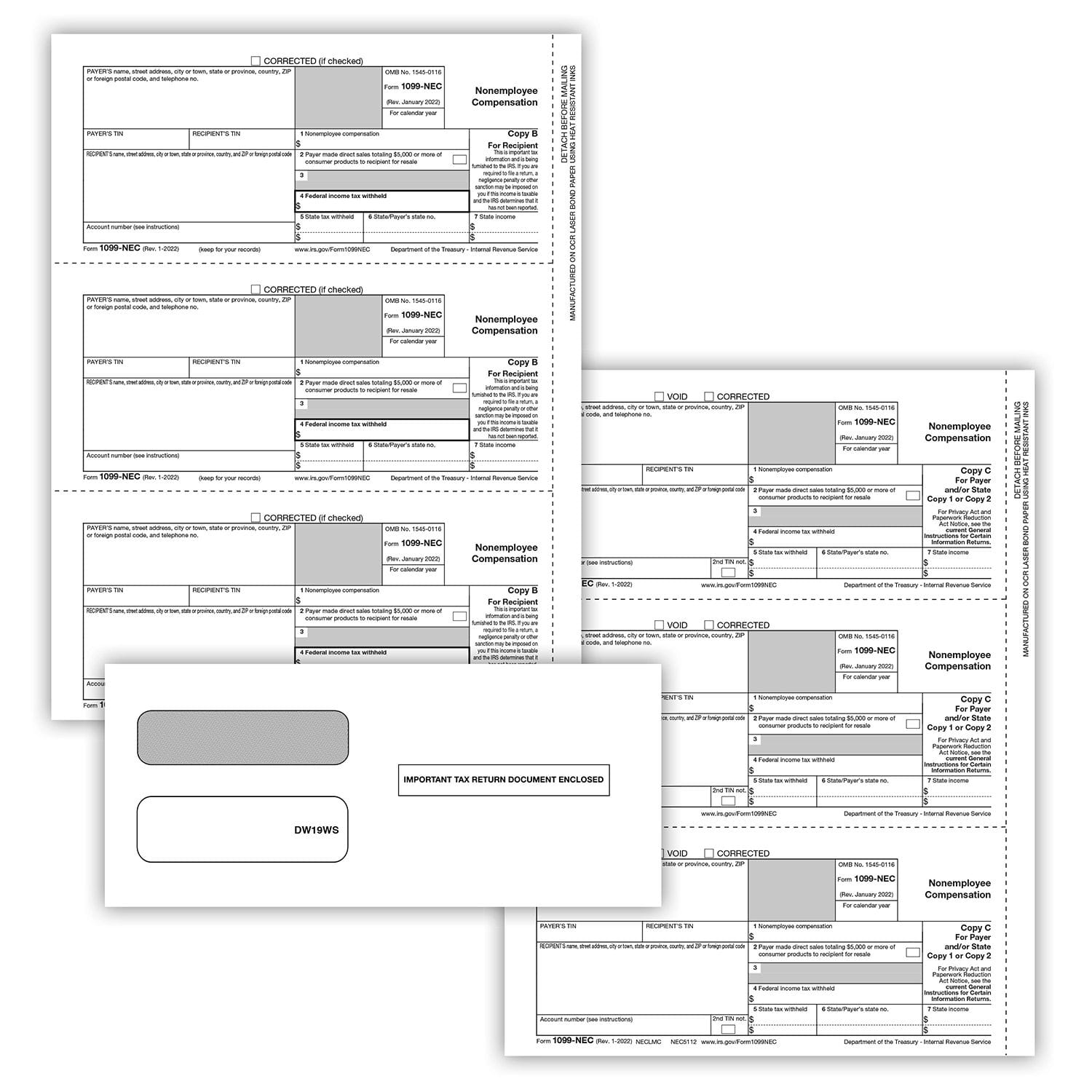 TFP 1099-NEC Packaged Laser Set for Electronic Filing, 3-Part, 25 Employees (with Envelopes)