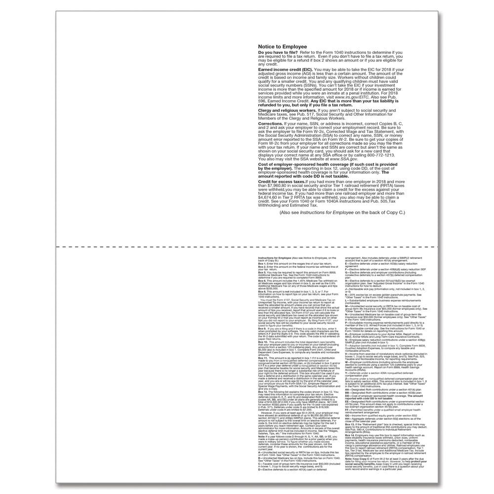 TFP W-2 4-Up Box Employee’s Copies B, C, 2 & 2 Combined - Pack of 500